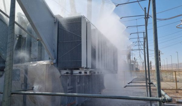 تست پاشش سیستم خنکاری ترانسهای واحد یک نیروگاه شهید کاوه قاین در بازدید ۴۰۰۰،جهت اطمینان از صحت عملکرد نازلها وتجهیزات ابزار دقیق، توسط واحد ایمنی وتعمیرات.