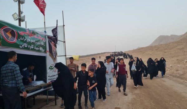 برپایی موکب پذیرایی از مهمانان در مراسم یادواره شهدا در ورودی مسجد جامع روستای بیهود، با همکاری گروه جهادی شهید کاوه نیروگاه قاین